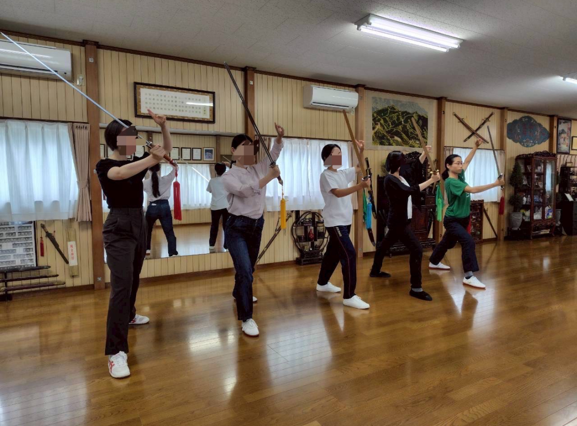 太極拳部です!私たちは2年生2名、1年生2名の計4名で毛塚実江子先生のご指導のもと、毎週月曜日に活動しています。今回の聖心祭では、2日間11時から10分間、野外ステージで簡化24式太極拳と剣の演武を行います。太極拳は静かでゆったりとした動きが特徴の中国武術のひとつです。どのような技か想像しながらご覧ください!